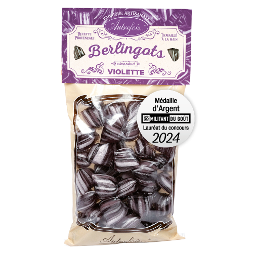 De délicieux Berlingots de fabrication artisanale aux arômes naturels de violette. Un vrai délice pour les amoureux de saveur d'antan.