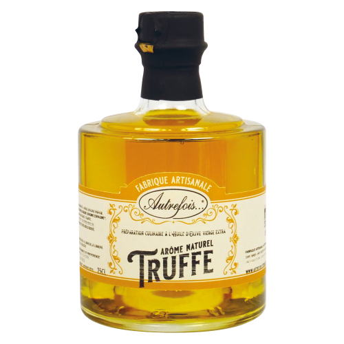 Une huile d'olive vierge extra* aux arômes de truffes conditionnée dans une jolie bouteille de 25 cl à la base carrée, qui s'arrondit vers le haut. Cette préparation à base d'huile d'olive vous permettra de relever vos plats en sauce ou vos salades vertes.