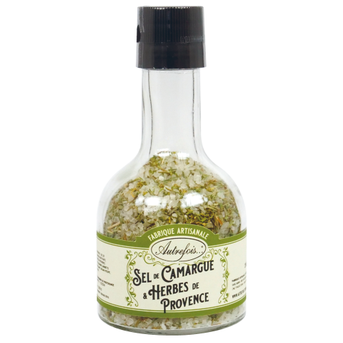 Une préparation à base de sel et herbes de Provence : de romarin, de thym, de laurier, de basilic et de marjolaine dans une jolie bouteille carrée et empilable. Pour agrémenter vos plats et salades de saveurs provençales.