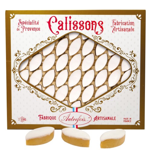 Nos Calissons de Provence sont des confiseries au doux mélange d'amande, de melon et d'écorces d'Orange confite dans une belle boite décorée.