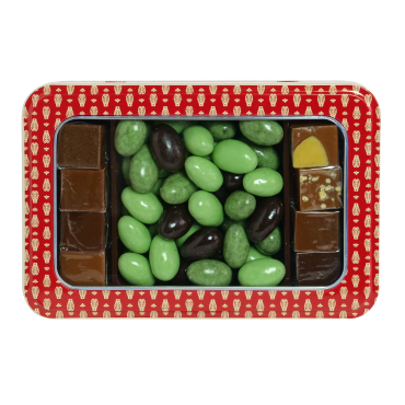 Offrez cette jolie boîte décorée à collectionner, remplie de petits caramels assortis et de délicieuses olives en chocolat. Pour offrir ou se faire plaisir.