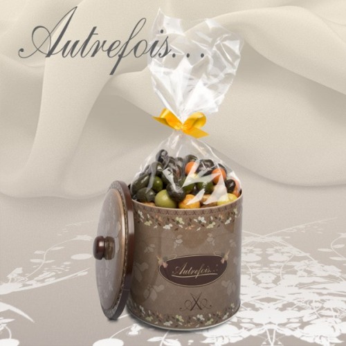 Dans une jolie boite décorée, vous retrouverez toutes nos délicieuses Confiseries aux Amandes grillées. Olives au Chocolat Noir, Amandises au Caramel et Amandises à la Crème Brûlée. Vous n'y résisterez pas !