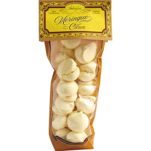Des petites bouchées de meringues artisanales au citron fabriquées avec tradition à base de blanc d'œuf et de sucre glace.